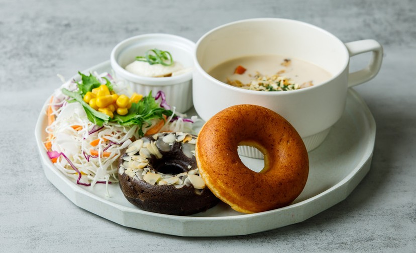 - 選べる豆乳焼きドーナツ、スープセット(ドリンク付き)、豆乳とおからのバームクーヘンお土産付き